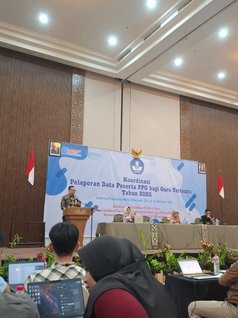 Admin IT Agustina Nasution dan Admin PD Dikti Ni’mah Sari Siregar hadiri undangan kegiatan Koordinasi Pelaporan Data Peserta PPG bagi Guru Tertentu Tahun 2025 diselenggarakan oleh Direktorat Pendidikan Profesi Guru, Direktorat Jenderal Guru dan Tenaga Kependidikan, Kementerian Pendidikan Dasar dan Menengah. kegiatan ini dilaksanakan di Sintesa Peninsula Hotel, Manado, pada 28–31 Oktober 2025 yang diikuti oleh 163 LPTK di seluruh Indonesia.